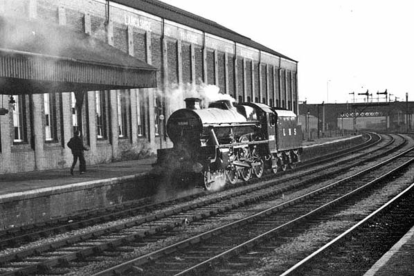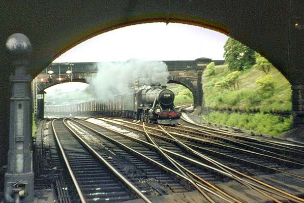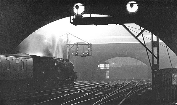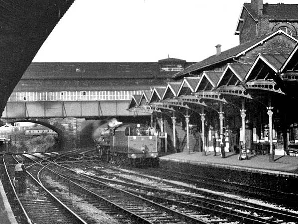 Photo by Eric Bentley ![]() Looking west from the up platform at Bury Knowsley Street station at 10.00pm on Friday 10 February 1967. The 8.37pm Oldham Clegg Street to Carnforth parcels train is held at a signal awaiting a clear road for Bolton. Photo by Eric Bentley ![]() Bury Knowsley Street station looking east from the down platform on.25 June 1968. Photo by Bevan Price ![]() Photo by Bevan Price ![]() On 15 November 1968 preserved 'Jubilee' class locomotive number 5596 waits for a clear road at the up platform. Steam on British Railways had officially finished in August 1968.