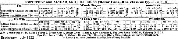 terminating at Barton. Altcar & Hillhouse did offer interchange possibilities with Cheshire Lines Committee (CLC) services running between Southport Lord Street and Liverpool or Manchester but it seems unlikely that there would have been much demand for this.