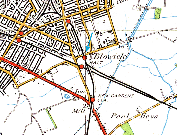 As a result of the success a further halt opened in March 1907 and this was followed by Butts Lane Halt which opened on the 18 December 1909. The other stations and halts on the Barton branch were located in sparsely populated rural areas but Butts Lane Halt was located on the eastern edge of Southport close to residential areas. It was situated on the south side of Butts Lane over which the line crossed on a bridge.