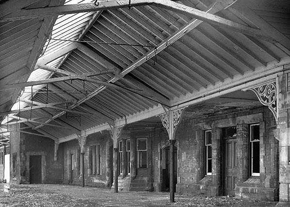 Caernarvon station up and down platform seen from under the canopy in the mid 1970s.
