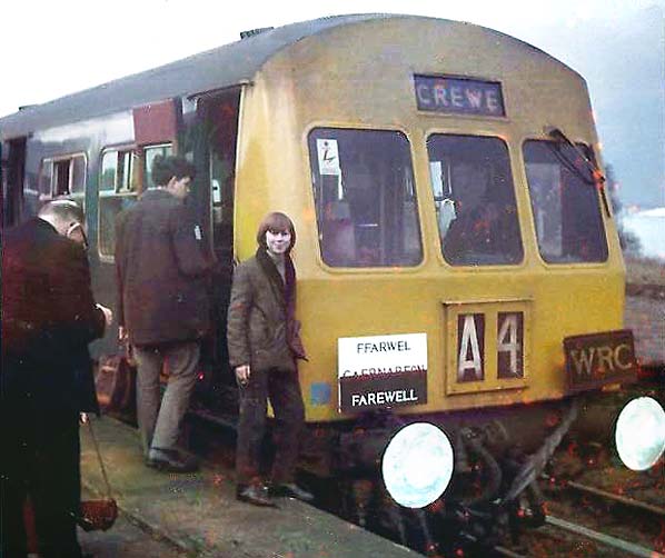 ' rail tour at Caernarvon on 5 February 1972. Posing for the camera is a young Andy Merrick.