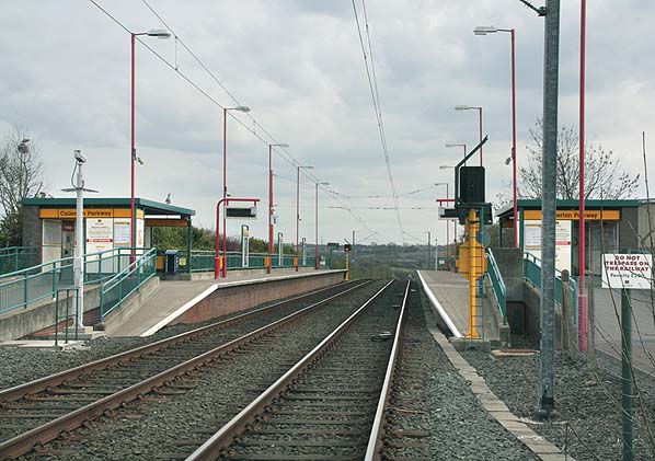 Callerton Parkway Station seen here is on the opposite side of the level crossing