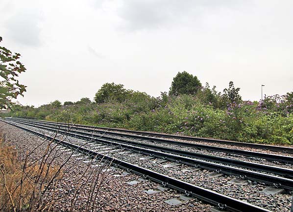 Camberwell station island platform looking north in July 2014. The platform edge only remains