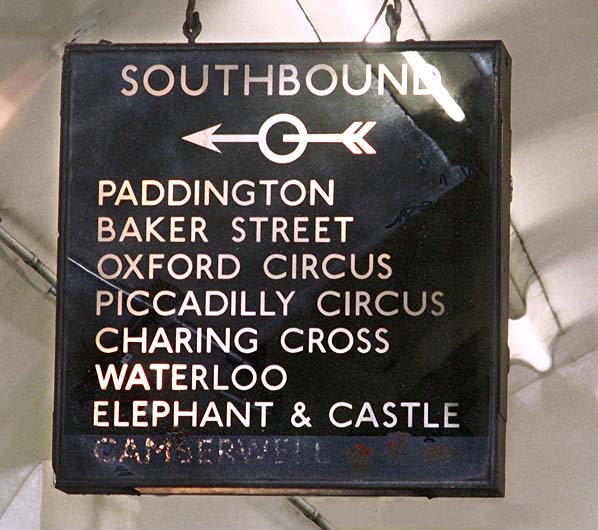![]() Station Name: CAMBERWELL Illuminated sign at Maida Vale station showing Camberwell. This picture was taken in the 1988's or 1990s, within a few days Camberwell was painted out again. I was with Alan when he took this picture. Having taken it we heard an announcement "will the people taking photographs on the platform report to the station supervisor immediately." We jumped on the next train!