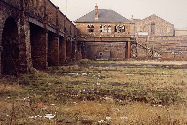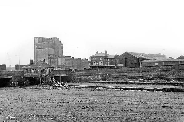 ![]() Canada Dock station looking north from the southern side of the goods yard in February 1986. Photo by Martin Brown ![]() A view of Canada Dock station looking north in April 1988. Photo by John Mann ![]() Canada Dock station in August 1990 seen from the goods platform that was located on the northern edge of the goods yard. The goods station was located on the far side of the bridge which carried Derby Road over the line. Photo by Paul Wright ![]() The site of the Canada Dock station in September 2005. Note the different brickwork in the wall which marks where the booking office was. This view is from a similar position as in the 1990 picture above, but the levels are completely different as the site has been filled in.