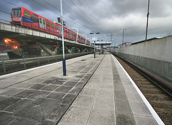 Canning Town Station looking north in December 2006 with a DLR train to the left