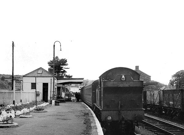 A Whitland train waiting to depart from Cardigan station in July 1958.