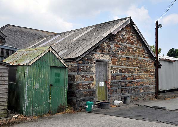 This unknown building near the passenger platform appears to be of railway origin. (June 2009).