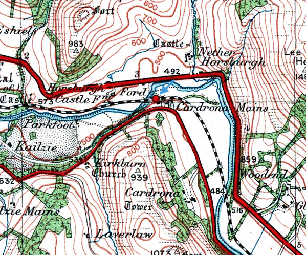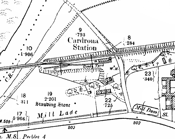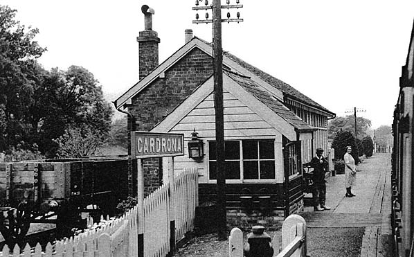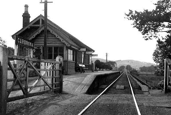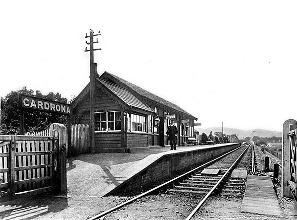 Cardrona (together with Rosslynlee Hospital Halt) was the only Peebles Loop station surviving until closure of the line to passengers which was not fitted with totem name signs.