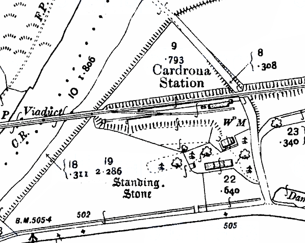 Notes: Cardrona opened on 1 October 1864 and was the only intermediate station on the Peebles Railway's extension from Peebles to Innerleithen. A Board of Trade Inspection prior to opening stated that the facilities at the station should be improved. At that time nothing was done, but a new single-storey signal box was opened at the west end of the platform, adjacent to the level crossing, in 1895. Unusually this was not a typical NBR box but was built to the Railway Signal Company’s established design.