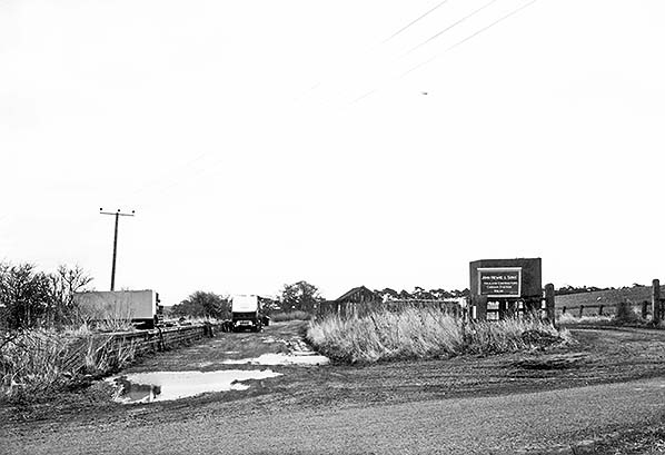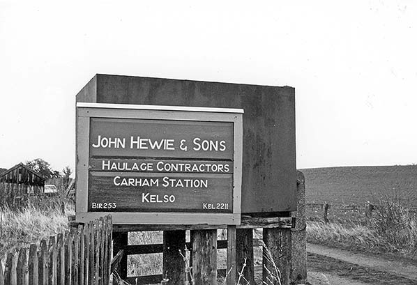Photo by John Mann ![]() The attractive hand-painted sign at the entrance to the old goods yard at Carham station in August 1978, seen from the former level crossing.