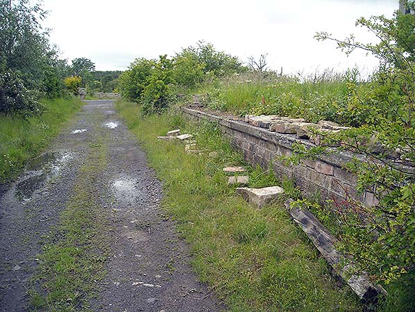 Photo by Alan Young ![]() Carham station in June 2011, looking west, with the goods loading bank (right) and up platform (left).