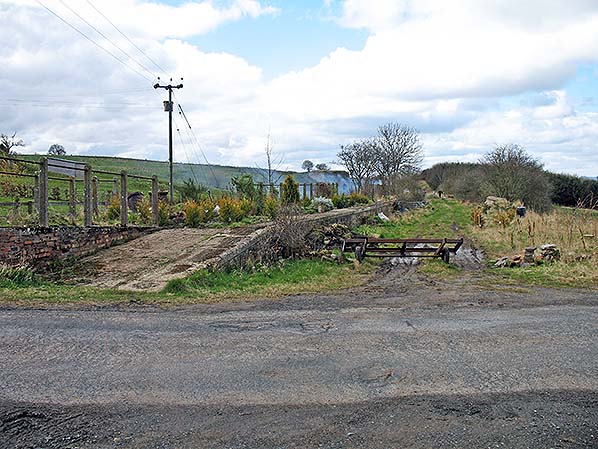 The down platform of Carham station looking south-west from the level crossing in April 2006.