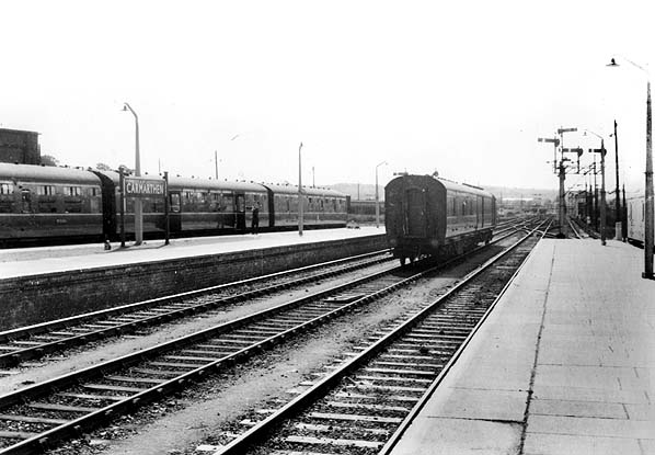 Carmarthen station looking south-west from the down platform in the 1960s.