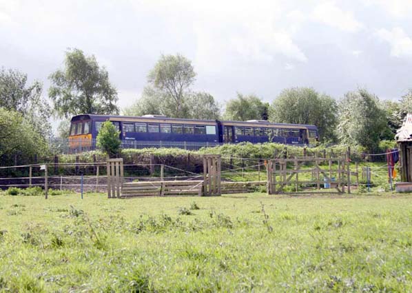 Looking SE from Laffak Road towards Carr Mill station site in May 2006. The Wigan end of the platforms would have been near where the train is located. Photo by Bevan Price