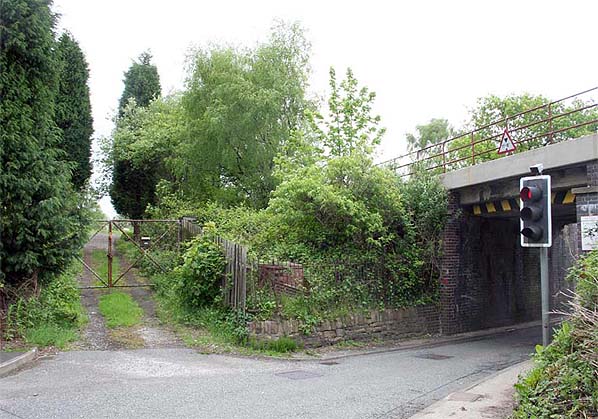 Former entrance to the Wigan-bound platform at Carr Hill, which was sited behind the tree next to the bridge. Looking NE from Woodlands Road Photo by Bevan Price