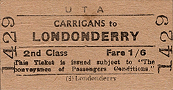 The UTA started to use ex-GNRI railcar A for the local services that served Carrigans. The railcar had come into service in 1932 and would be renumbered as 101 by the UTA in October 1961. When Railcar 101 was not available, one of two steam engines that had arrived at Derry/Londonderry with the night goods services would operate these local services instead.
