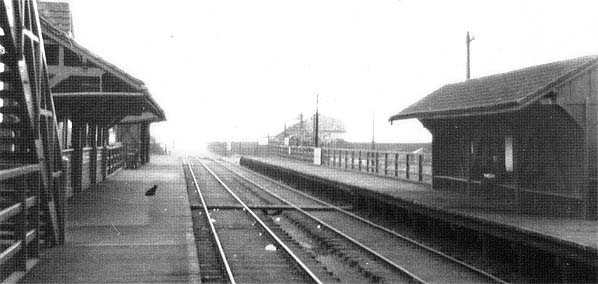 Nothing remained of the station by the mid 1950's. A wooden foorbridge spanned the platforms to the east of the station building. There was a signal box easat of the down platform.