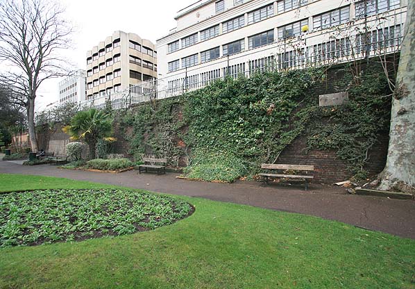 The retaining wall in the cutting east of Central Croydon Station in December 2007