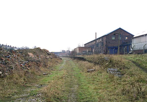 Looking south at Cheadle Heath Stations slow line platforms in April 1984. Platform 3 was to the left and 4 to the right. One of the stations concrete lamps was still extant and it can be seen on the right of the picture. Also still extant at this time was the station goods warehouse which can also be seen on the right of the picture.