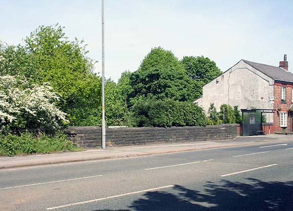 Looking north across A6 towards station site which was behind the bridge parapet. Photo by Bevan Price