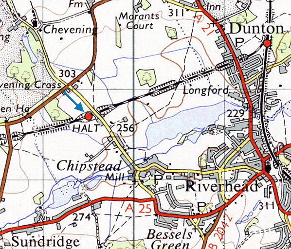 Notes: An intermediate station between Dunton Green and Brasted was proposed at Sundridge in 1882. A site was selected but the station was never built.