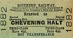 The Sevenoaks Chronicle and Kentish Advertiser reported on 5 August 1892: 'A capital idea has been carried out in reference to the coming Primrose League fete to be held at Chevening. Of course the Westerham railway line carries one either way to Brasted or Dunton Green, both stations being a few miles from the place of fete. A temporary platform however will be erected at Chipstead bridge, and for the convenience of Westerham and Brasted members of the Chevening habitation, the trains will stop at this platform, enabling them to be placed close by the field.'
