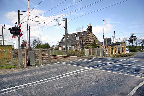 Photo by Steven Hedley from his Flickr photostream ![]() Looking north-east towards the former crossing cottages at Chevington in April 2005. The original building dates from 1847, but some additions can be seen to the right of the original cottages.