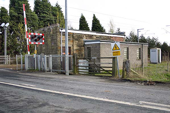 ![]() Station Name: CHEVINGTON![]() After decommissioning in February 1991 the base of the signal box at Chevington has been retained as a relay room. The view in April 2005 is looking south-east.