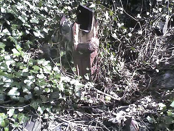 ![]() A snapped cast-iron canopy support post, still in BR maroon and white, survives on the southbound platform in April 2004. This was removed during the recent clarence work for the Metro extension Photo by Bob Todd