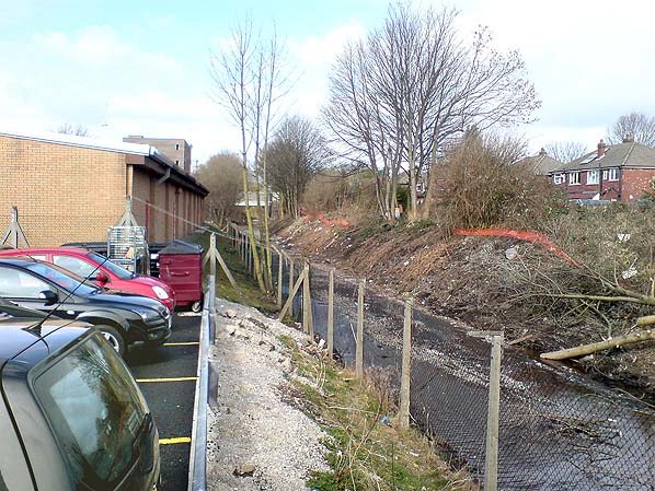 Looking north at the site of Chorlton-cum-Hardy Station in March 2009 during the construction of the Werburgh’s Road Metrolink extension. Construction work started in 2008.