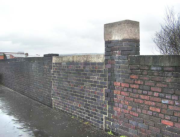 The bricked up entrance that once led to Chorlton cum Hardy's southbound platform as seen in April 2010. Photo by Paul Wright