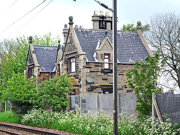 Photo by Alan Young ![]() The former station building at Christon Bank is seen in February 2001, looking north-east across the East Coast main line. The fine sandstone building is in residential use. It is a shame that when the windows were altered sometime between 1988 and 2001, the opportunity was not taken to restore the mullions which had been removed in a previous refurbishment in the 1970s.