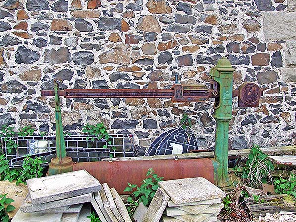 This weighing machine from Christon Bank station has been placed in the grounds of the nearby church. The photo was taken in May 2009.