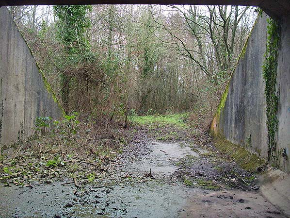 Looking north along the trackbed towards Exeter in January 2009. Chudleigh station was behind the photographer on the south side of the bridge.