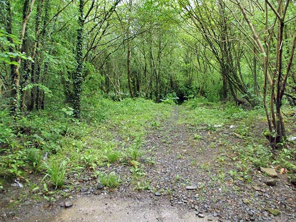 he site of Chudleigh station looking south in May 2014. The station building was on the left. The goods lock-up was in the trees in the middle distance.