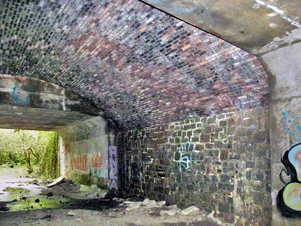 Photo by Dave Holman ![]() The widened overbridge at Chudleigh station in May 2014. At road level there is no visible trace of the original bridge but at track level it is clear that the original brick arch has been incorporated into a new wider bridge. This view is looking north.