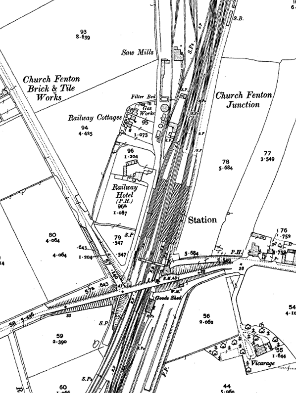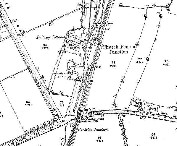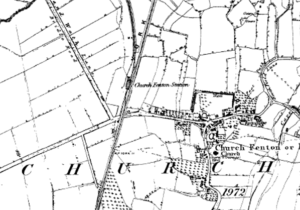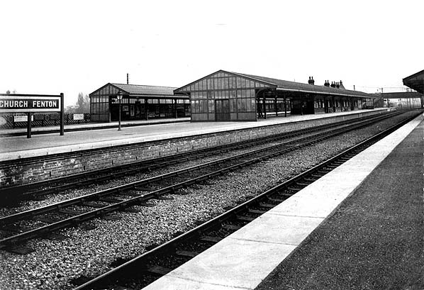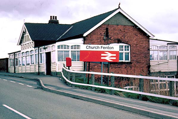 Present state: | Still open. The main station building from the second Church Fenton station still stands in private occupation immediately west of the tracks to the north of the present station. The entrance building to the present station at road level is now used by the Sunar Bangla restaurant and take-away. In the booking lobby, through which the platforms are reached, the booking office window is still in place. |