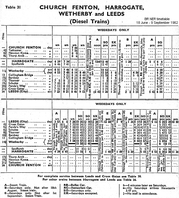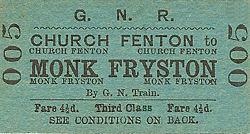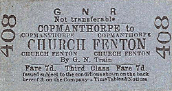 In 1961 the recently introduced diesel service between Liverpool and Newcastle was switched from the Arthington route bringing new traffic to the Wetherby line. Although this route was slower it avoided a reversal at Leeds. This renewed importance could not however save the lines. At the time of the Beeching enquiry, there was a maximum of eight passengers on the one train a day between Church Fenton and Leeds via Wetherby, with no regular passengers. There were a few more passengers on the Leeds to Wetherby route but competition from an improving bus service eventually made passenger numbers unsustainable despite the increase in the number of commuters living in Wetherby. Stations had received minimal investment since Nationalisation, amounting to little more than painting the nameboards in BR(NE) tangerine and installing totem name signs at Wetherby. Given that all stations were manned, together with sixteen signal boxes and three manually A notable headline at the time read 'First lamb to the Beeching slaughter', cheerfully further stating 'No regular passengers object at inquiry’, which was the case, but only for the Wetherby - Church Fenton line. It was also inaccurate in that the Newcastle – Washington service, earmarked by Beeching, had closed the previous September! A decision was reached on 24 October 1963, the inquiry having taken just three months, with both lines closing to passengers from 6 January 1964. The original Wetherby station remained open for goods traffic until 4 April 1966. The only section of the original route to remain open is the short section of line from the Crimple Viaduct (where the spur from Pannal joined the Church Fenton route to the junction with the line to the former Brunswick terminus. This section is used today by the frequent Leeds – Harrogate – Knaresborough – York services. A new station called Hornbeam Park opened just south of this junction on 24 August 1992. ![]() There were ambitious plans to relieve growing congestion through the town centre and on the A58 and A661 by converting the disused railways into relief roads. These suggestions never came to fruition. In Railways around Harrogate, Volume 3 (1998) Martin Bairstow presents a compelling case, headed ‘A lost commuter route?’ for the restoration of passenger services between Leeds and Wetherby. He also remarks that the dieselisation of the service in January 1959 could have increased the use of the trains, but without improved frequency of trains that some neighbouring lines enjoyed, there was really no incentive to use them. The track was lifted in 1966. Some parts of the former railway tracks between Wetherby and Leeds have been used for housing development at Bardsey and Collingham Bridge. Sustrans National Cycle Network routes 66 and 67 use some of the remaining trackbed. This line is walkable from Cross Gates to a point south of Collingham where a landowner refuses access to a short section of the line. At Scholes muddy conditions are encountered, but this soon gives way to a grassy embankment with lots of sandstone bridges in situ. The most impressive stretch is just north of Thorner where the line passes through a very deep, narrow cutting with the Seacroft road soaring above on a high brick bridge. At Collingham the road bridge must be used to cross the Wharfe, but from the north bank a footpath follows the embankment, sandwiched between a golf course and the river, into Wetherby. A public footpath and cycleway follows the trackbed from the A1 (M) to Thorp Arch station and from Wetherby to Stofforth - this section of the path is known as Harland Way.. Tickets from Michael Stewart. Bradshaw and BR timetable from Chris Totty. Route map drawn by Alan Young. Thanks to Martin Bairstow (author/publisher), Peter Tuffrey (author) and the Wetherby Historical Trust who supplied many of the photos used in this feature.