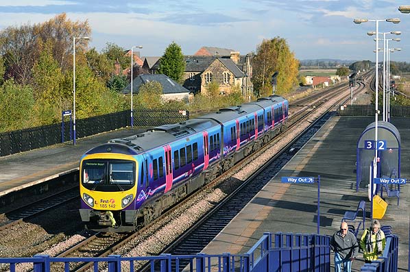 Notes: The York & North Midland Railway (YNMR) opened the first part of its route to the west of Church Fenton village, and on to Milford, on 30 May 1839, completing it the following year. Originally, the railway crossed Common Lane on a level crossing, and it is likely that a small station serving Church Fenton was provided on its north side when the line opened. In 1848 the station was enlarged and rebuilt by the Y&NMR a short distance to the north, with the addition of workshops and an engine shed to coincide with completion of a branch from there to Harrogate via Tadcaster and Wetherby. This gave the modest wayside station new importance, and within two years it had become a stopping place on the new East Coast main line (ECML) from York to London with the opening of a line from Burton Salmon to Knottingley, trains continuing southwards via Askern and Doncaster. ![]() The existing line from Church Fenton to York was subsequently quadrupled to handle the increased levels of traffic, and the station was rebuilt to the south, back at its original site, with the addition of extra platforms and connections between the two pairs of lines. This was authorised on 23 September 1903 at a cost of £7348 and opened in September 1904. In its final form, the station employed a stationmaster, porters, shunters, office staff, signal men, platelayers and a telegraph messenger. The station now had two island platforms and a side platform on the easternmost track. Access was from the road bridge that replaced the level crossing at the south of the station. Here there was a two-storey rectangular brick building with a pitched slate roof. At street level, the upper floor was T-shaped with the gable end of the short side containing the booking office, facing onto the road. On either side, an enclosed timber verandah filled in the gap between the gable and the end of the building. Fawcett (2005) describes the structure on the road frontage as ‘a welcoming entrance in the form of a glazed wooden loggia, erupting in the centre into a broad, half-timbered gable’. The verandah was typical of NER practice at that time, strongly resembling buildings constructed at Staddlethorpe (now Gilberdyke), the Goole-Selby line stations and those on the Ponteland/Darras Hall branch. The booking office gave access through a porch to a lattice footbridge which was supported on brick towers, with gently inclined timber ramps down to the platforms. There was a timber waiting room on the west island platform with toilets and other rooms, including a newsagent’s shop on the central island platform. The side platform had no buildings. In 1937 an RAF base opened at Church Fenton, bringing additional status and traffic to the station. Although still in use the RAF intends to close the base by the end of 2013. In British Railways’ days North Eastern Region tangerine platform number signs were installed, but the station was not given totem name signs, and it is thought that LNER wooden running-in boards were retained until the early 1970s when corporate identity signage was fitted. At some time, the outer platform canopies were substantially shortened and that on the island platform was removed and replaced with a bus shelter in the 1980s. At the same time the footbridge and ramps were replaced with wide steps. The platform buildings and remaining canopies were demolished in 1990 and replaced with bus shelters. The once attractive and important-looking station is now a bleak and far less welcoming place. ![]() Currently the station is served every two hours (hourly in the peaks) on weekdays by trains on the York to Leeds route (most of which continue to Bradford Interchange and Blackpool) and by a limited service on the York to Sheffield line (two trains per day each way) and towards Selby and Hull (one northbound and two southbound trains each way, peak hours only). Sundays see a two-hourly service to Leeds & York and two trains each way on the Dearne Valley line. With the country in the grip of 'railway mania' in the 1840s Harrogate was an obvious target for railway entrepreneurs who were eager to cash in on the town’s popularity, with its wealthy clientele able to pay high fares. In Harrogate local townsfolk and businesses initially opposed the railway, fearing that an influx of people from Leeds and Bradford would lower the tone of the area; but this opposition was overcome. It was going to be a race to see who would be first to reach the town.