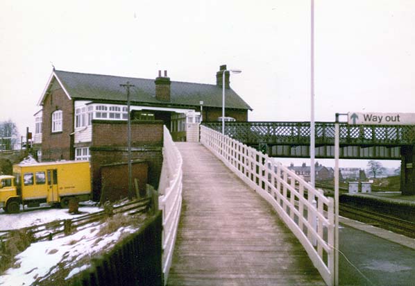 Church Fenton station looking up the ramp towards the booking office in February 1979.