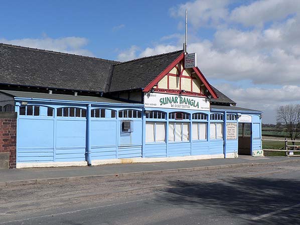 Church Fenton street level building has been leased to an Indian restaurant as seen in this view from April 2006. The entrance to the station is through the doorway on the right.
