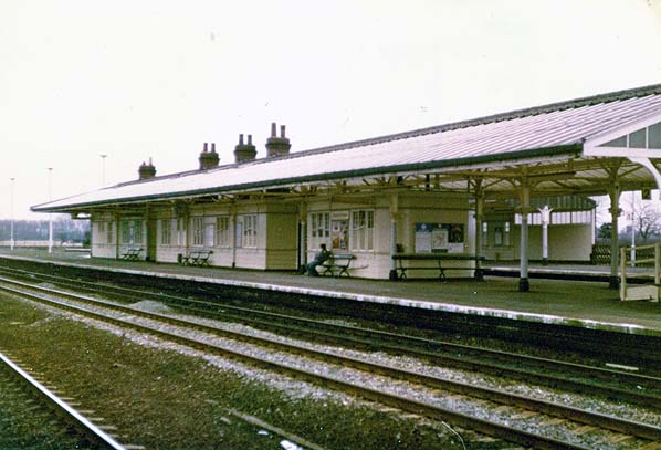 Platform 3 of Church Fenton station is seen from platform 4 in February 1979