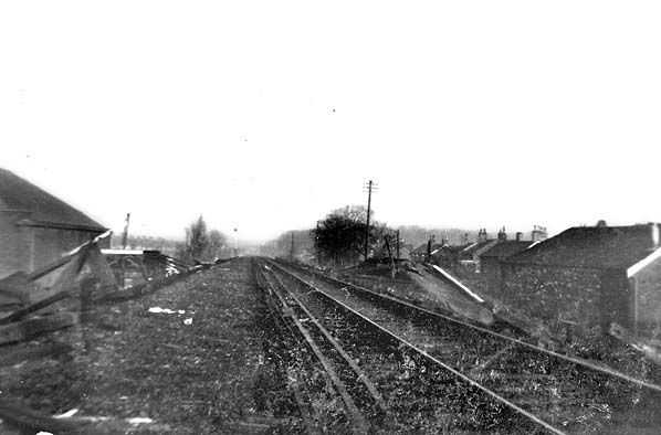 ![]() Churchtown station looking north-east on 31 January 1965. Demolition of the platforms was almost complete and the down line had been lifted.