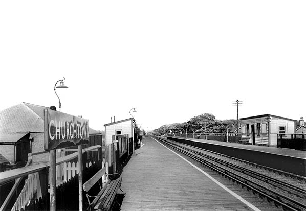 ![]() Looking north-east at Churchtown station from the west end of the down (Preston-direction) platform in 1963. The station’s timber platforms and waiting shelters are clearly shown. Despite being a busy commuter facility on an electrified line the station was to close the following year.