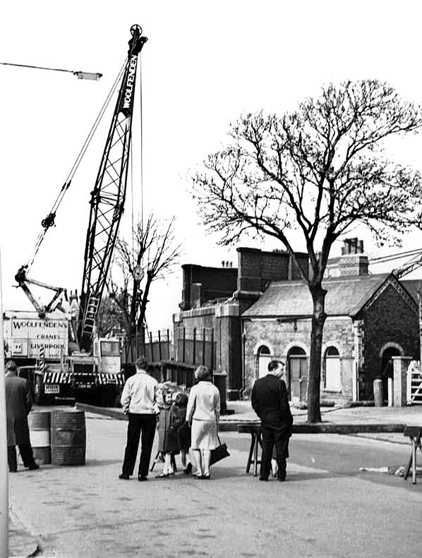 Churchtown station looking west on 2 May 1965. The bridge that had carried the line over Cambridge Road had just been lifted off its abutments. Many local people had turned out to watch the demise of a local landmark.