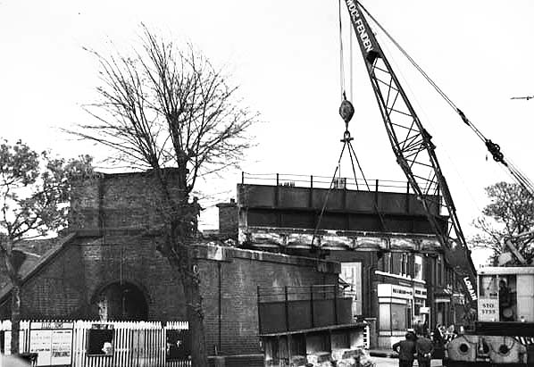 Churchtown station on 2 May 1965. The bridge that had carried the line over Cambridge Road had just been lifted off its abutments. Many local people had turned out to watch the demise of a local landmark.