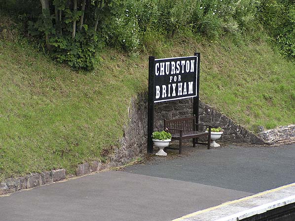 ![]() The original station nameboard which informs passengers that they can change for Brixham is still extant in this July 2009 picture. Indeed passengers still can change at this station for Brixham but their onward journey has been by bus since May 1963.
