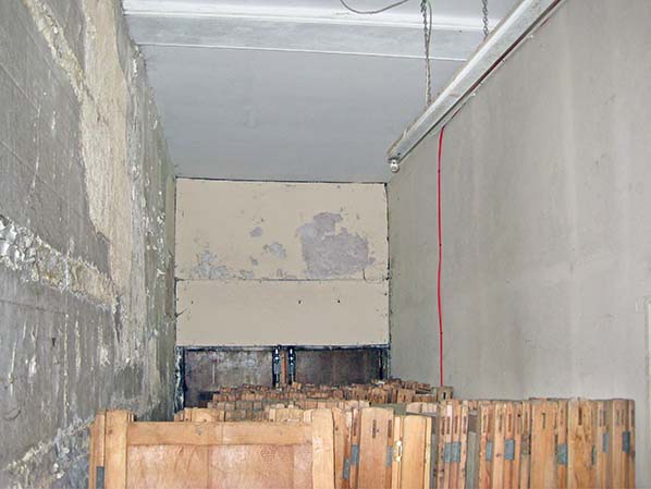 The rear passage way leading to the platform in May 2016. The door at the end can be seen in views of the station from the south.