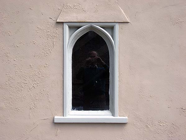 Victorian Gothic window in the three-storey part of the building seen in May 2016.